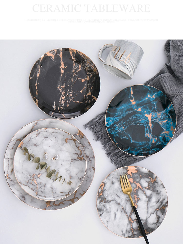 European Style Marble Plates Ceramic Dinner Set Porcelain